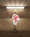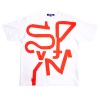 Transposing entire pages, front covers and individual motifs into his jacket linings, stitched on the reverse of CDG button-up shirts and printed onto a series of iconic t-shirts, Watanabe’s collection highlighted ‘Frankenstein’s Helvetica’, among other radical experimental typographic expressions by SPIN.