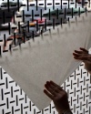 A variable system, made up of perpendicular lines and stencilled letterforms, centres around the upright marks of the H and its repeated vertical forms.